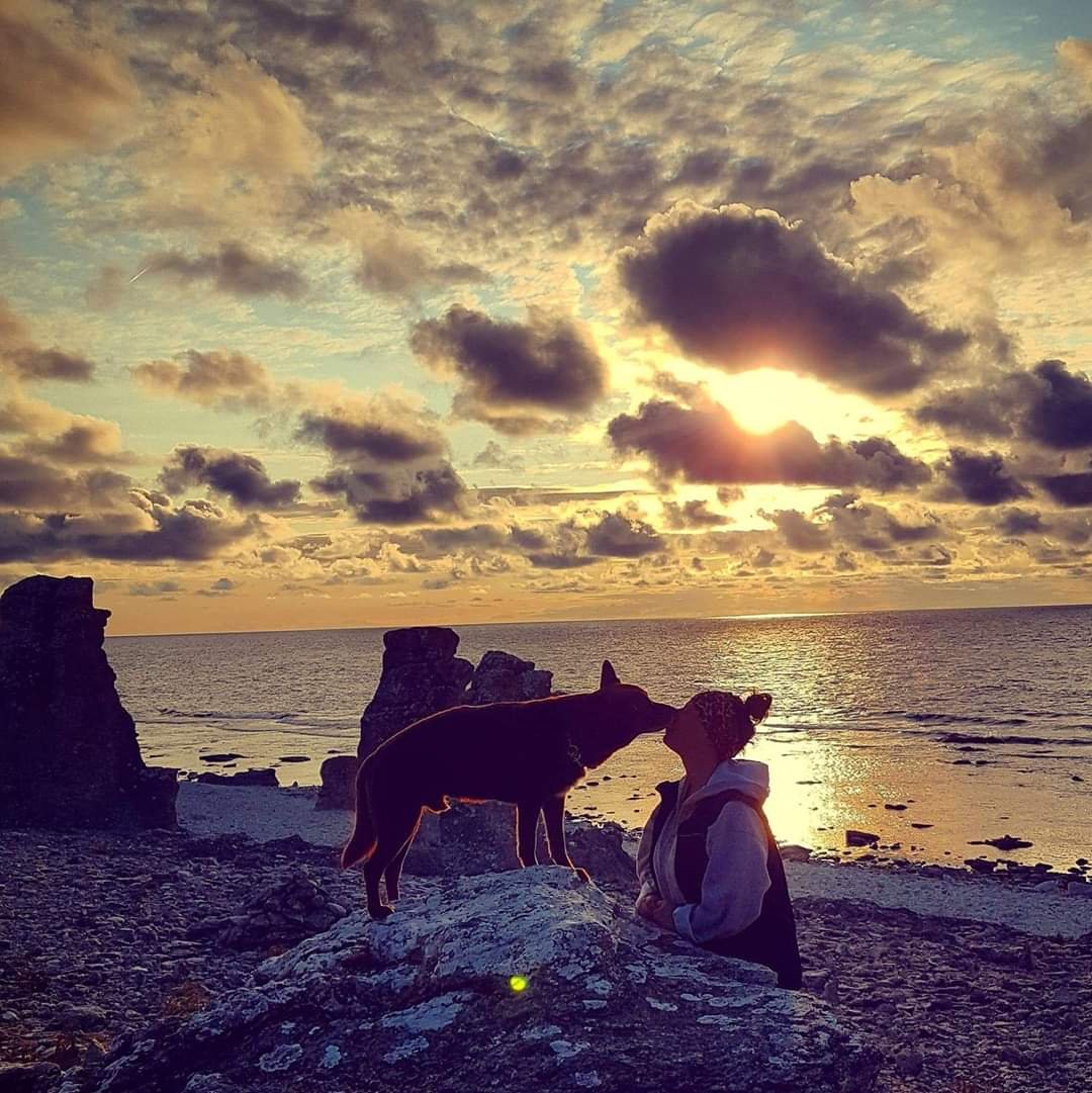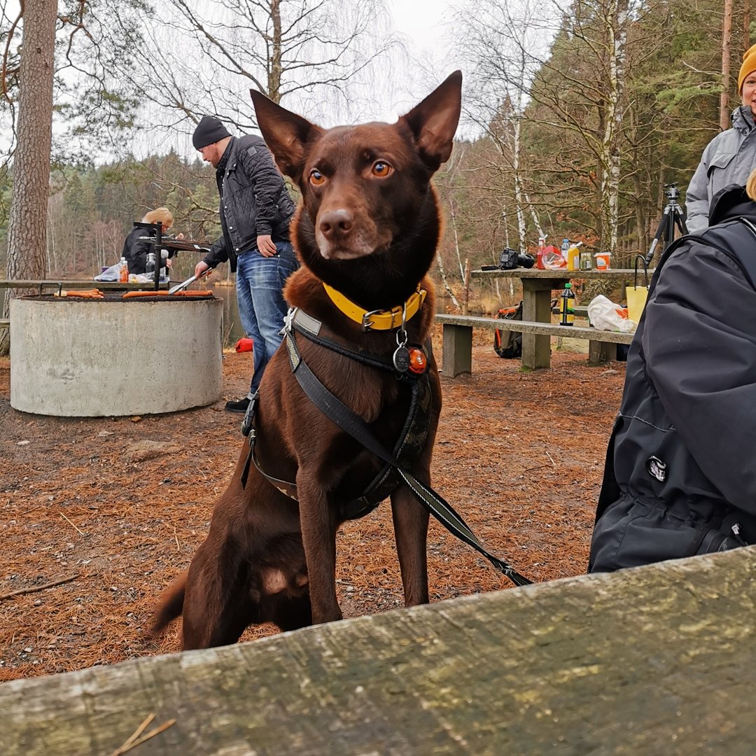 Ibland faller andan på att man faktiskt har saker utöver vardagslivet att dela med sig av!Kl 4 natten till lördag packade jag in Dunder och Dixie för att åka ner till Halmstad på kelpie träff som Sofia, (ägare till kelpiegalleriet) fixat! Jag träffade Sofia första gången på en rasspecial i Almunge sommaren 2012, det var så stort o träffa skaparen bakom galleriet som jag tittat i så ofta!Vi stötte på varandra titt som tätt efter det, och2014 I augusti åkte jag en 4årig Vajlo och 4månaders Dunder ner till Sofia I Halmstad som hade en 3 månaders Glenn hemma 😍. Det va som alltid kelpienörderi på Hög nivå och vi åkte till wk SM i vallning för o kika på vallhundar av hög klass!Sen dess har åren passerat och telefonsamtalen har blivit längre 😉❤️Träffen var på vackra skedala Ön med magisk skog! Och det var fullt med super härliga ägare med sina kelpies!Extra roligt var o träffa; Dixies mamma Bondie och Matte lisa, Dixies syster Diva matte Therese och lillmatte Ida, Opiums bröder Owe & Opal med matte Karin o Kicki samt et litet barnbarn till Vajlo som bara var så underbart söt!Sen var det precis lika roligt att träffa alla andra! Matte fick bekänna färg med en galen ung dam i höglöp som var allt annat än lugn o beskedlig (och ja matte får ännu en gång ta på sig att hon är vild- Skärpning matte!! ) och Dunder levde livet med mys o go’s ❤️ Han är ju aldrig till nått besvär och så lätt o ha med ❤️ (förutom att landet hundarna inte kan gå i koppel längre)Vi fick se Diva i arbete med specials ök av röd Kong, som va så roligt att se – så sjukt duktiga! Therese försökte utmana med svågömda ställen i skogen högt o lågt men det va ingen match för Diva! Vi provade och när Dixiedoo fattade vad som skulle göras hittade hon kongen snabbt 😊Efter träffen, blev det timmar och timmar med fortsatt kelpienörderi hemma hos Sofia framför galleriet, gamla bilder och hunddata – bästa sysselsättningen! 😍Förutom att Dixie är lite lätt galen, så är jag imponerad av henne. Hon började löpa för ca en vecka sen (8 dagar) så hon är på väg in i höglöp. Men hon är precis sitt härliga goa glada busiga arbetsvilliga jag som vanligt!Här hemma har grabbarna i prövningen (framförallt de 2 okastrerade) varit jätte duktiga. Jag har noll tolerans på extra sniff och uppvaktning nu under löpet och de lägger ner efter tillsägelse. De är inte stressiga flåsiga eller pipiga, förutom höjt intresse av henne är allt som vanligt – iaf nu innan höglöpet. Hoppas på att det är fortsatt lugnt men är såklart redo på att det kan bli en större prövning för dom de kommande dagarna. Annars har vi flocken som vanligt med varandra när vi är med och har 100% uppsyn.