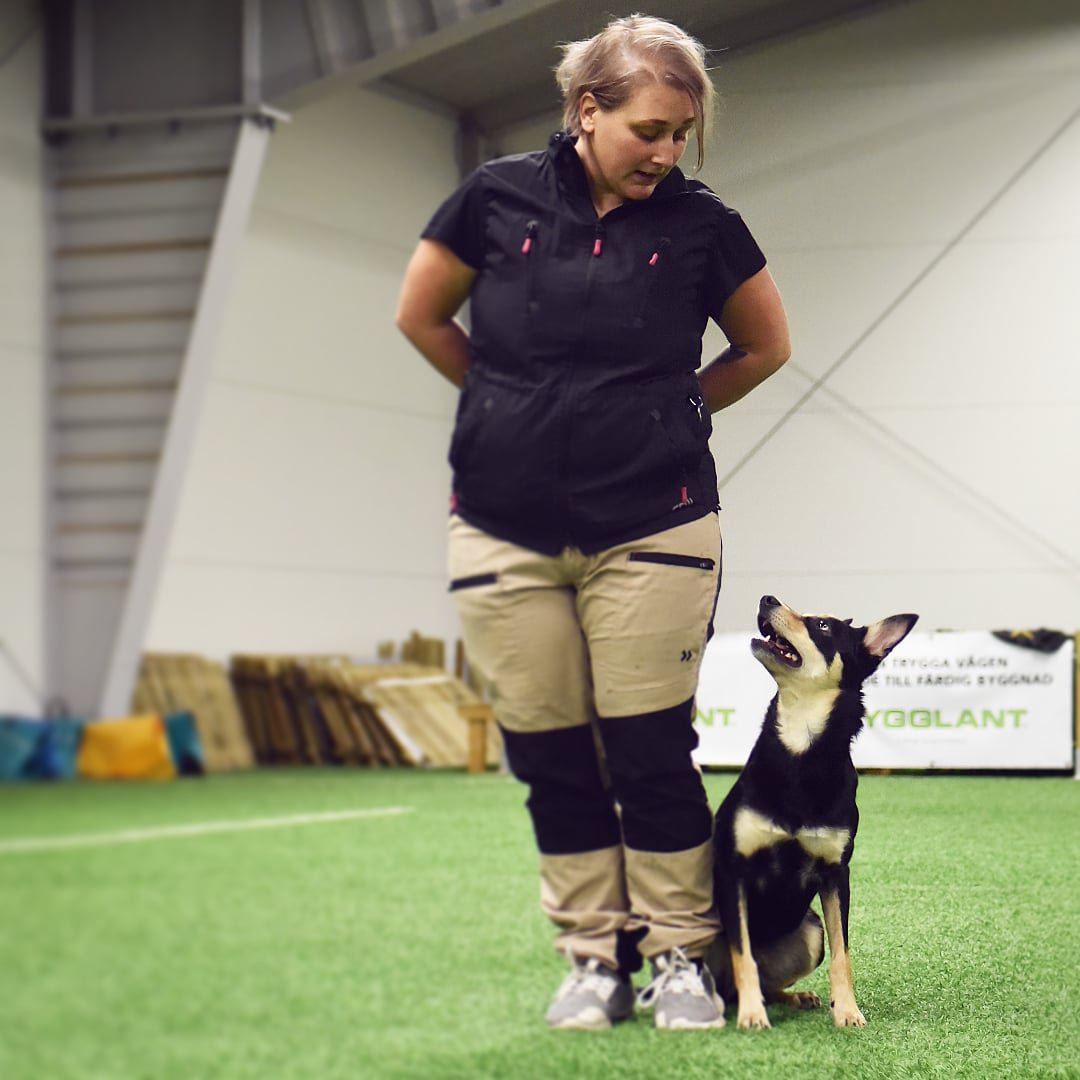 Det var Dixies första vistelse i inomhushall och hon som unghund på landet i corona tider träffar ju inte så mycket annat folk. Hon visar sig vara otroligt störningstålig och miljöstark. Det var som att vi var hemma i vardagsrummet fast med lite roligare saker o leka med. Hon fick gå fritt följ nära och intill andra personer – med bravur. Hon snodde apporter från planen när ingen annan uppgift gavs eller leksaken kom för nära någon som låg och ”skräpade”. Hon kampar friskt och villigt gav sig hän i lek med främmande person. Vi hade en riktigt härlig känsla efter dagen!